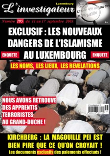 ...et encore L�espion luxembourgeois du Palais de Justice qui avait pr�venu le patron de la BCII Emoi et trafic dans les cabarets Gang des FUBU : r�organisation Les apparentements terribles � Le Soir � prend ses d�sirs pour des r�alit�s Editorial : l�hypocrisie des m�dias Tous les chiffres sont in�gaux Le Roi des cons Massacres de l�OTS : AXA-Assurances Luxembourg serait concern�e Les chocolats de Juncker Fichier des d�linquants sexuels : l�exemple de � L�investigateur � Les conneries de Birenbaum Perquisitions dans les milieux cyclistes belges L�histoire � un million de dollars de Jessica Lynch L�affaire � Watt � fait des vagues au Parlement europ�en Fils cach� de Chirac : un article de L�investigateur fait le tour du monde Al Qaida : arrestation d�un journaliste d�Al-Jazira en Espagne Reynders : faire revenir l�argent belge planqu� au Luxembourg Indulgence p�dophile belge : 11 324�me �pisode Les nichons de Laurence Ferrari L&H; : action collective �tendue � Dexia Banque Les revenus faibles plus tax�s en Belgique qu�ailleurs Le Parlement europ�en aime les gays Les journaux mendiants belges en justice La Commission europ�enne � nouveau en danger La connerie du p�re de Dutroux |