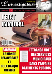 L�investigateur hebdo N�216 -LUXEMBOURG- du 12 au 18 fevrier 2004